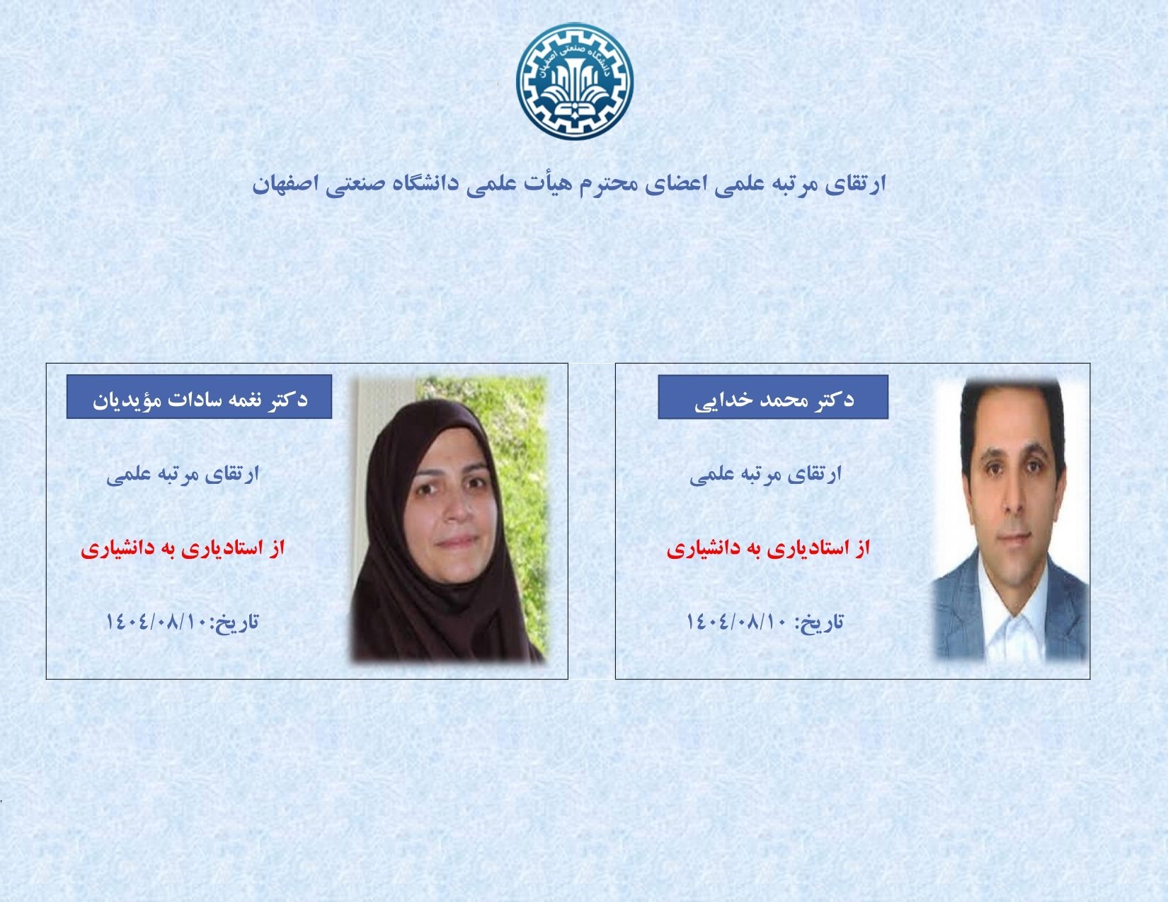 مصوبات فروردين ماه 1404 هيأت مميزه دانشگاه صنعتي اصفهان