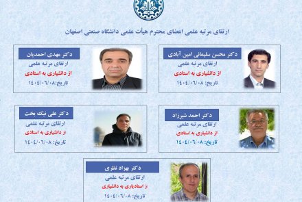 1- آقاي دكتر بهزاد نظري - عضو محترم هيأت علمي دانشكده برق و كامپيوتر - ارتقاي علمي از استادياري به دانشياري